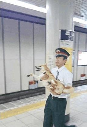 没过多久,地铁站的工作人员发现了不对劲。一个管理员走过来,盯着柴犬看了半天。这家伙大概也感觉到了压力,低头瞄了瞄四周,像是在找逃跑的路。可管理员没给它机会,直接一把抱起,柴犬四条腿在空中乱蹬,表情那叫一个无辜。
