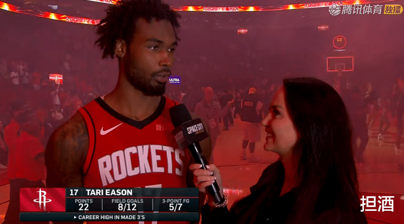 本场比赛表现亮眼的伊森国汇策略,在场边接受记者采访,伊森要能保持健康和现在的状态,对火箭来说就是一员虎将。