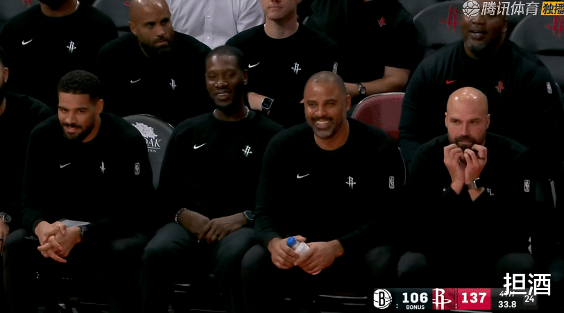 场边乌度卡脸上也露出笑容了。火箭升空,就看能否来一波连胜了。
